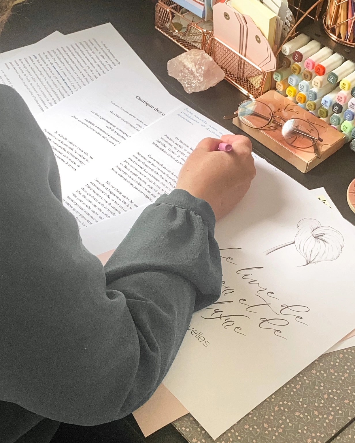 Grâce à mes carnets poétiques et bientôt à mes cours et ateliers, je souhaite vous transmettre les outils et les pratiques qui m’ont aidée ces dernières années à retrouver le fil de ma créativité et à cheminer vers une vie plus alignée.