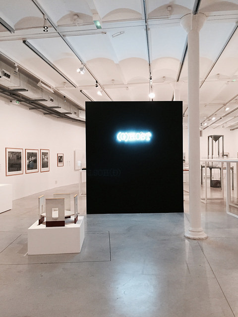 Le premier volet, visible jusqu’au 21 février, est consacré aux architectures fantomatiques. Au centre, l’œuvre (G)HOST de Melik Ohanian, installation lumineuse qui joue sur la proximité entre « fantôme » (ghost) et « hôte » (host). Au milieu de ces fantômes tout en noir et blanc, le visiteur est bien l’hôte, invité à la promenade d’œuvre en œuvre par attirance plastique et visuelle.