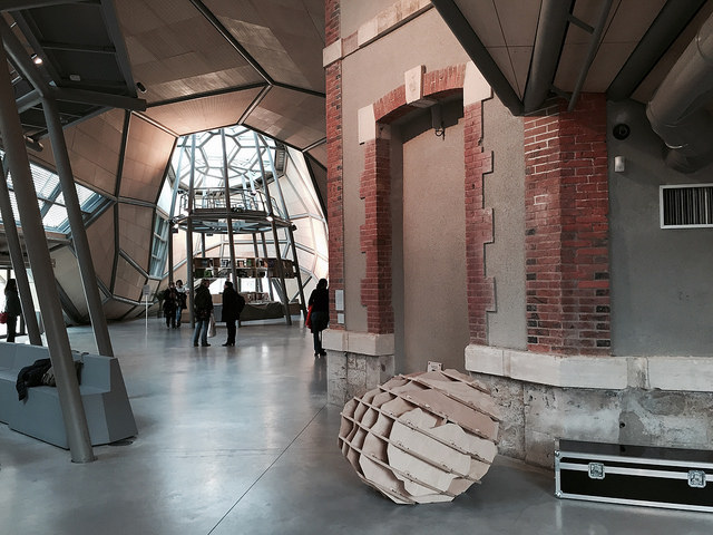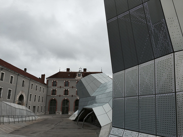 L’impératif des architectes, JaKob + MacFarlane (qui sont également à l’origine de la Cité de la Mode et du design) était d’intégrer le bâtiment historique datant des XVIII-XIXe siècles ; ils ont donc travaillé, avec un logiciel de morphing, autour du quadrillage (que l’on peut d’ailleurs voir apparaître sur le bâtiment) pour faire sortir de terre les 3 tours, les « Turbulences », qui donnent leur nom au lieu. Et l’ensemble est plutôt réussi, le futuriste côtoie l’ancien de manière assez harmonieuse.