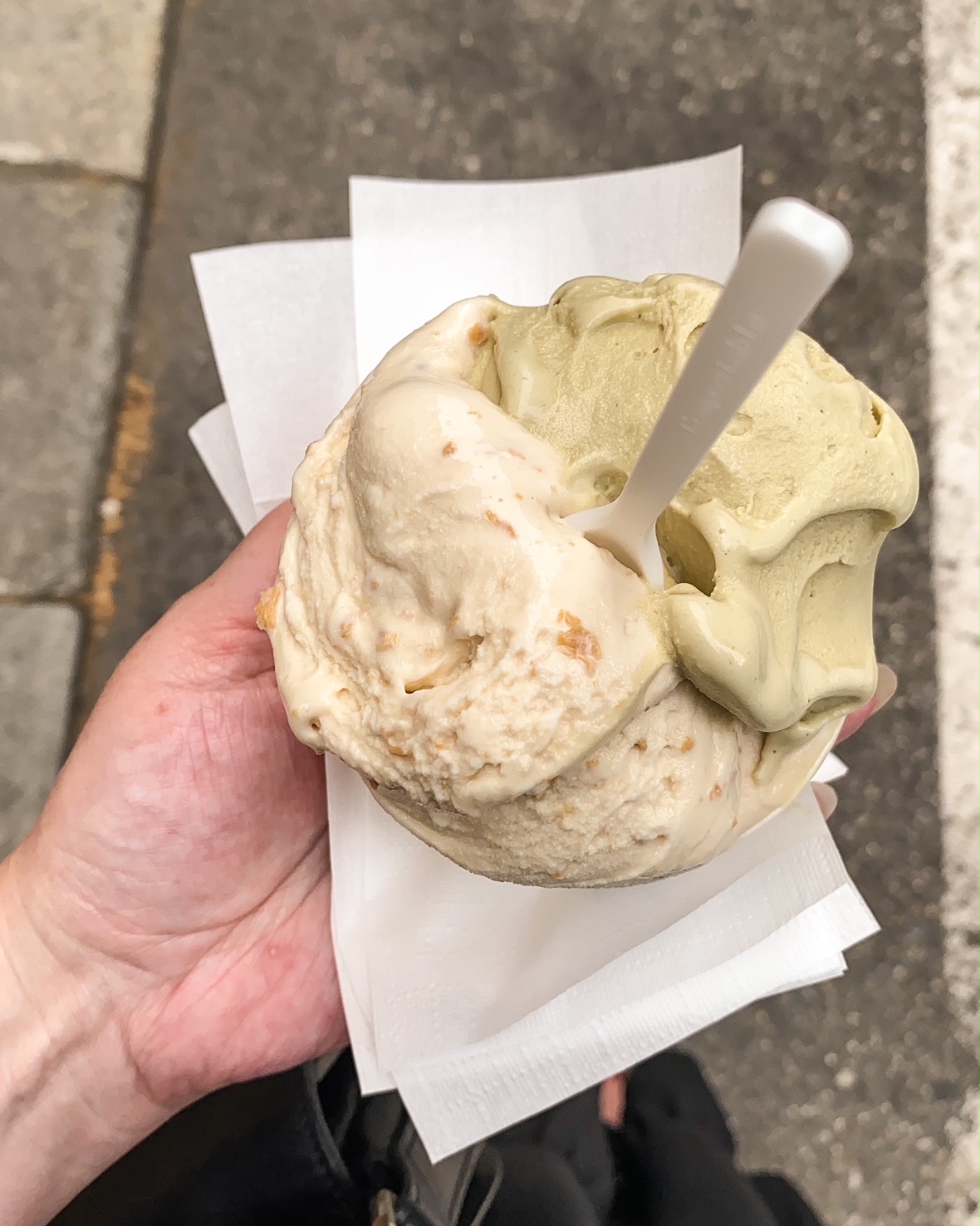 Je suis une grande amoureuse des glaces italiennes, parce que j’aime les glaces crémeuses et fondantes. Donc là c’était la tradition : tous les soirs, je sortais tester un glacier, ce qui fait que mes adresses sont dans un périmètre restreint.