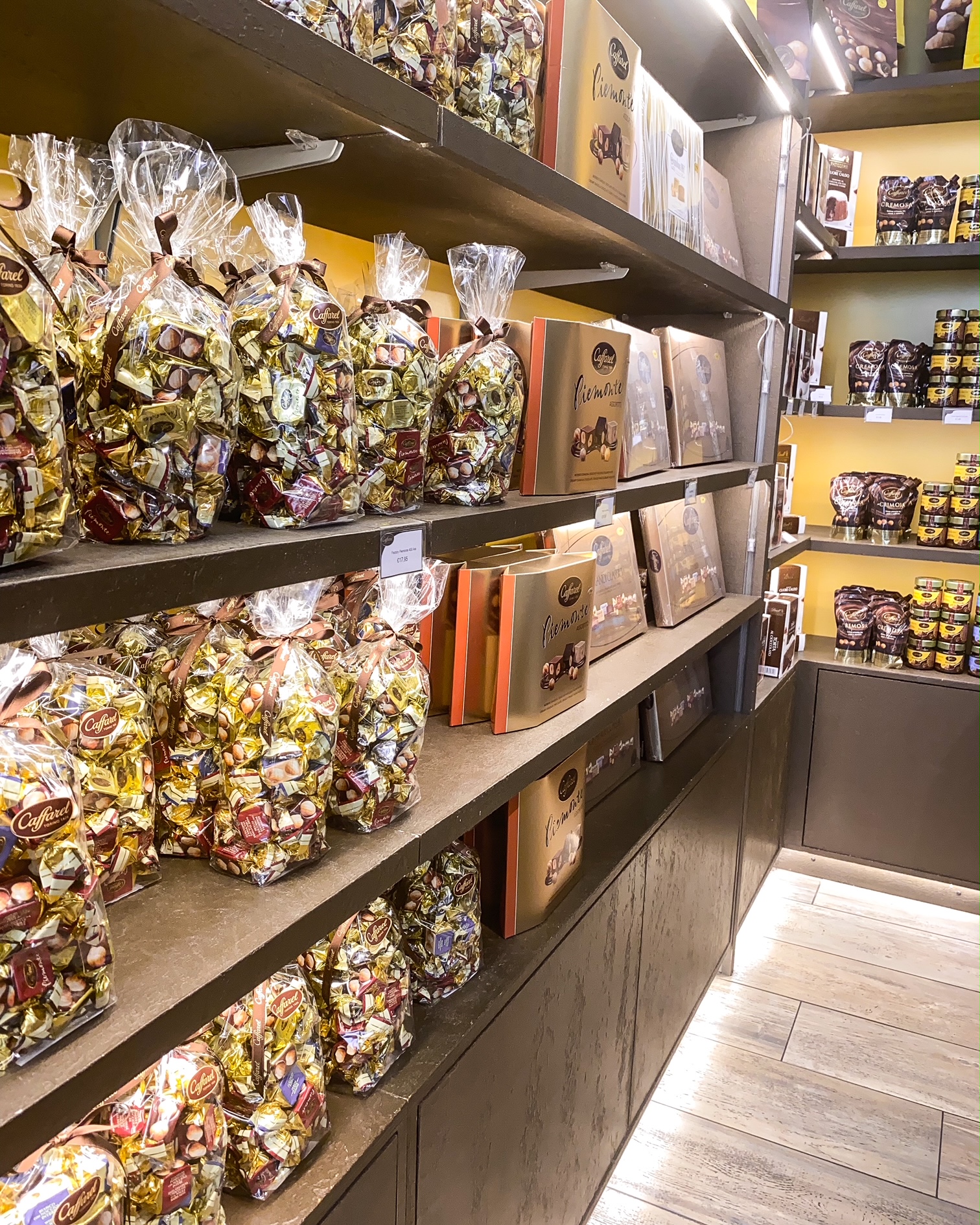 4. Et pour finir avec le miam, mes chocolats à la noisette (à tomber, même s’ils ont un peu souffert du transport malgré le petit sac isotherme qu’on m’a gentiment offert) viennent de chez Caffarel, via Carlo Alberto. Apparemment, c’est eux qui les ont inventés…
