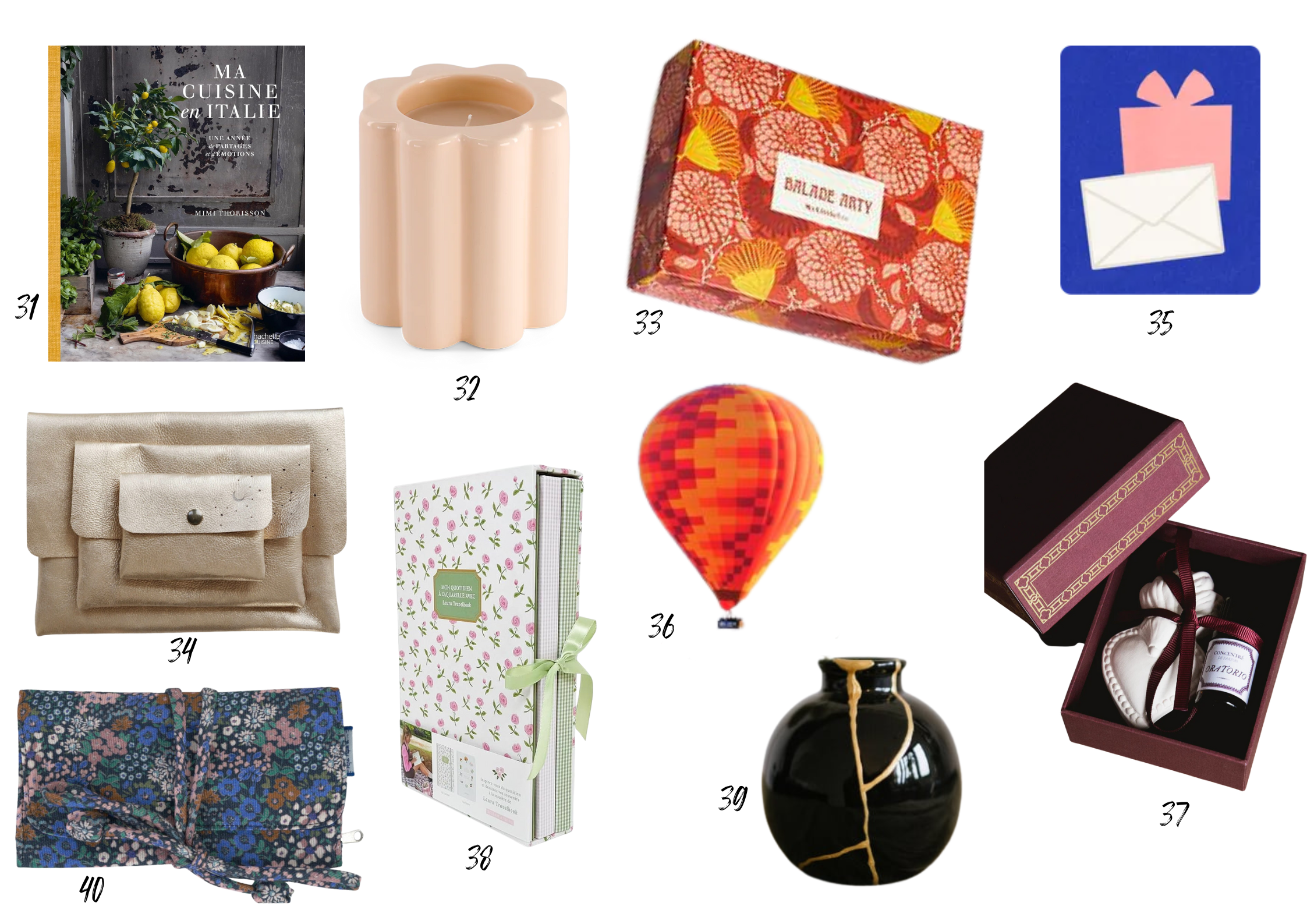 J’ai décidé cette année de changer ma formule, et plutôt qu’une liste réduite, je te propose cette année une sélection de 40 cadeaux (à tous les prix) pour t’aider à trouver l’inspiration, et pas seulement pour mes cadeaux à moi : la plupart de ces idées sont dans ma propre liste, mais il y en a aussi que je possède déjà. J’ai aussi glissé certaines de mes propres créations.